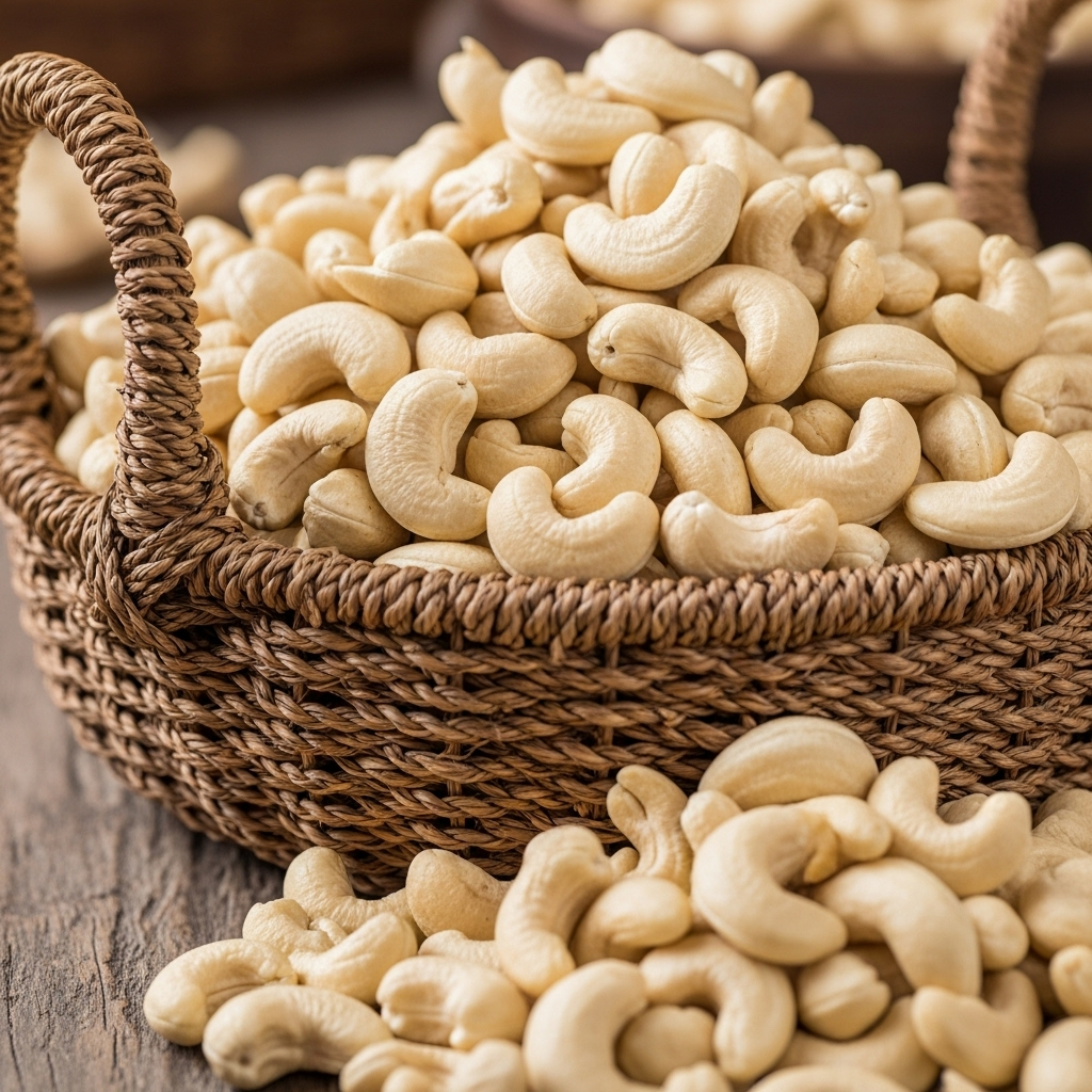 Cashew nuts are creamy, kidney-shaped nuts derived from the seeds of the cashew apple (Anacardium occidentale), native to tropical regions such as India, Brazil, and Vietnam. Renowned for their rich, buttery flavor and satisfying crunch, cashews are packed with essential nutrients including healthy fats, protein, vitamins (E, K, and B6), and minerals like copper, zinc, magnesium, and iron.